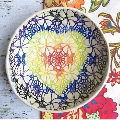 1) Tell us a little about yourself, your family, your hobbies, your creative background, etc. I come from a very nontraditional family. My mother was an entrepreneurial business owner and my dad was a closeted conservative gay man at a time when neither of these was socially sanctioned. I have consequently lived on the fringes and prefer unconventional and artistic people. I was a dreamy child and have lived as a full time potter for 40 years. Working in clay makes me happy! It's my primary work goal, and why I've remained a solo studio artist. I love having lots of unscheduled time to follow creative impulses, meditate, listen to audiobooks, care for foster kittens and cats, and hang out with people who are cultural creatives.