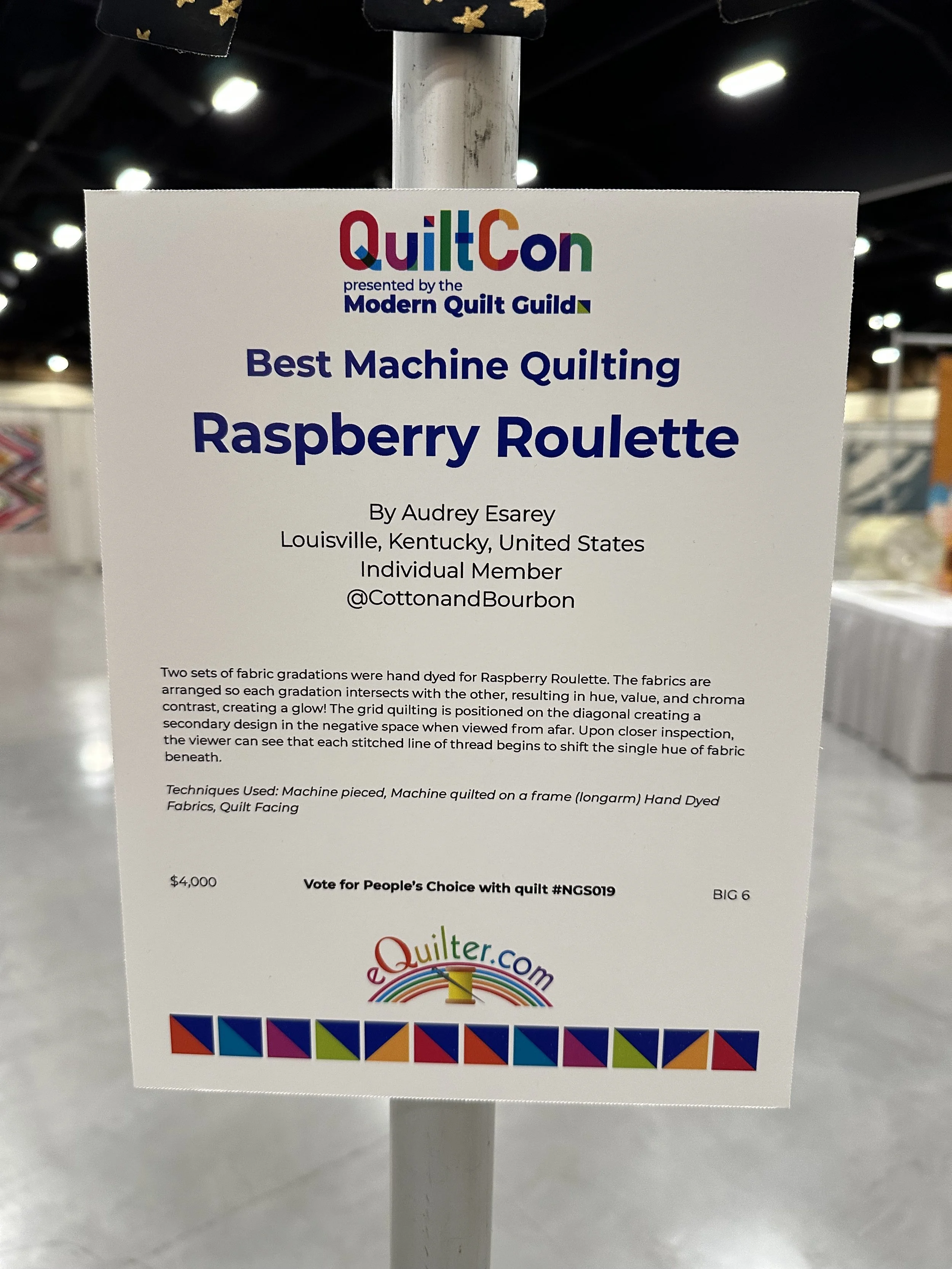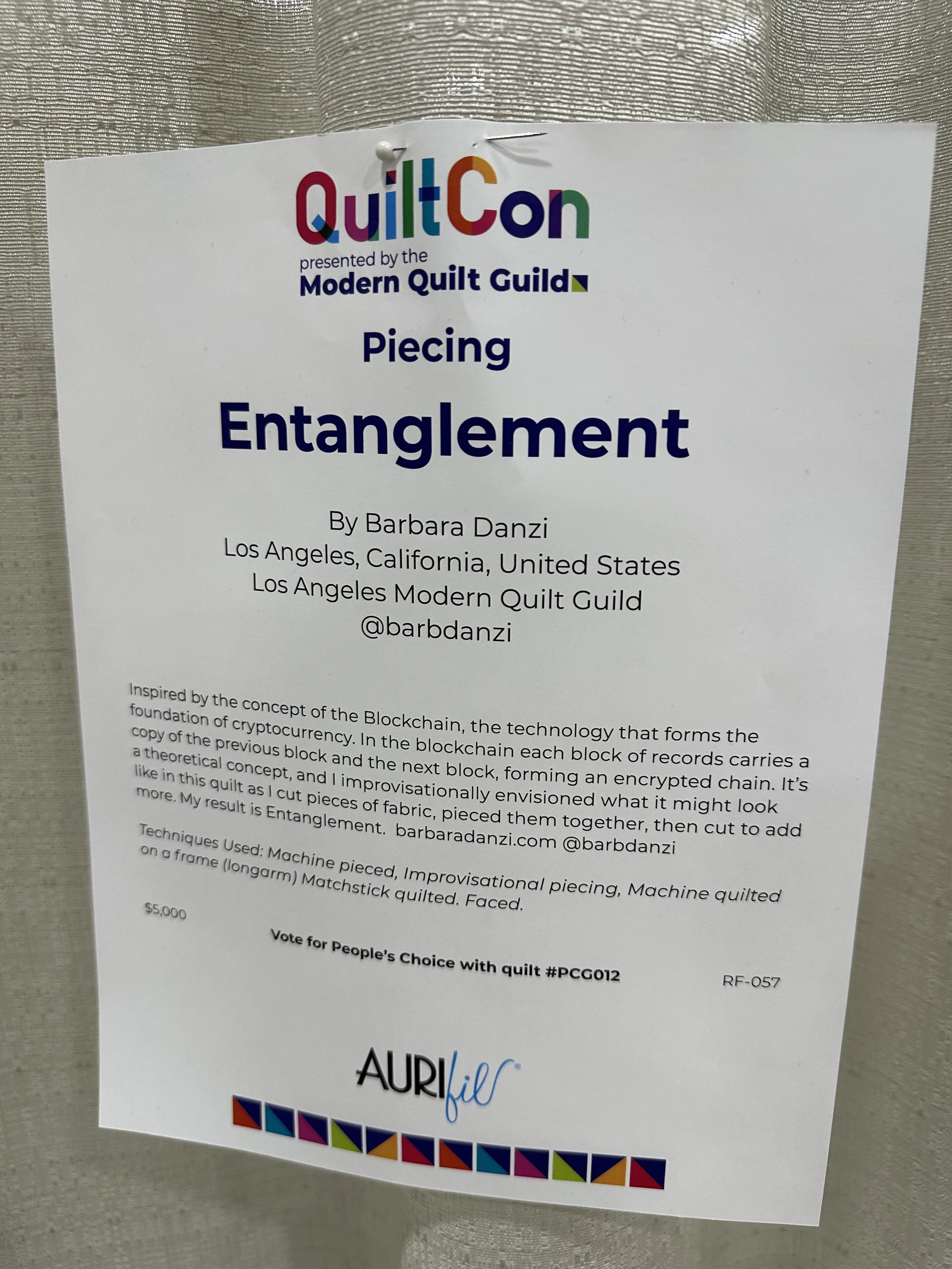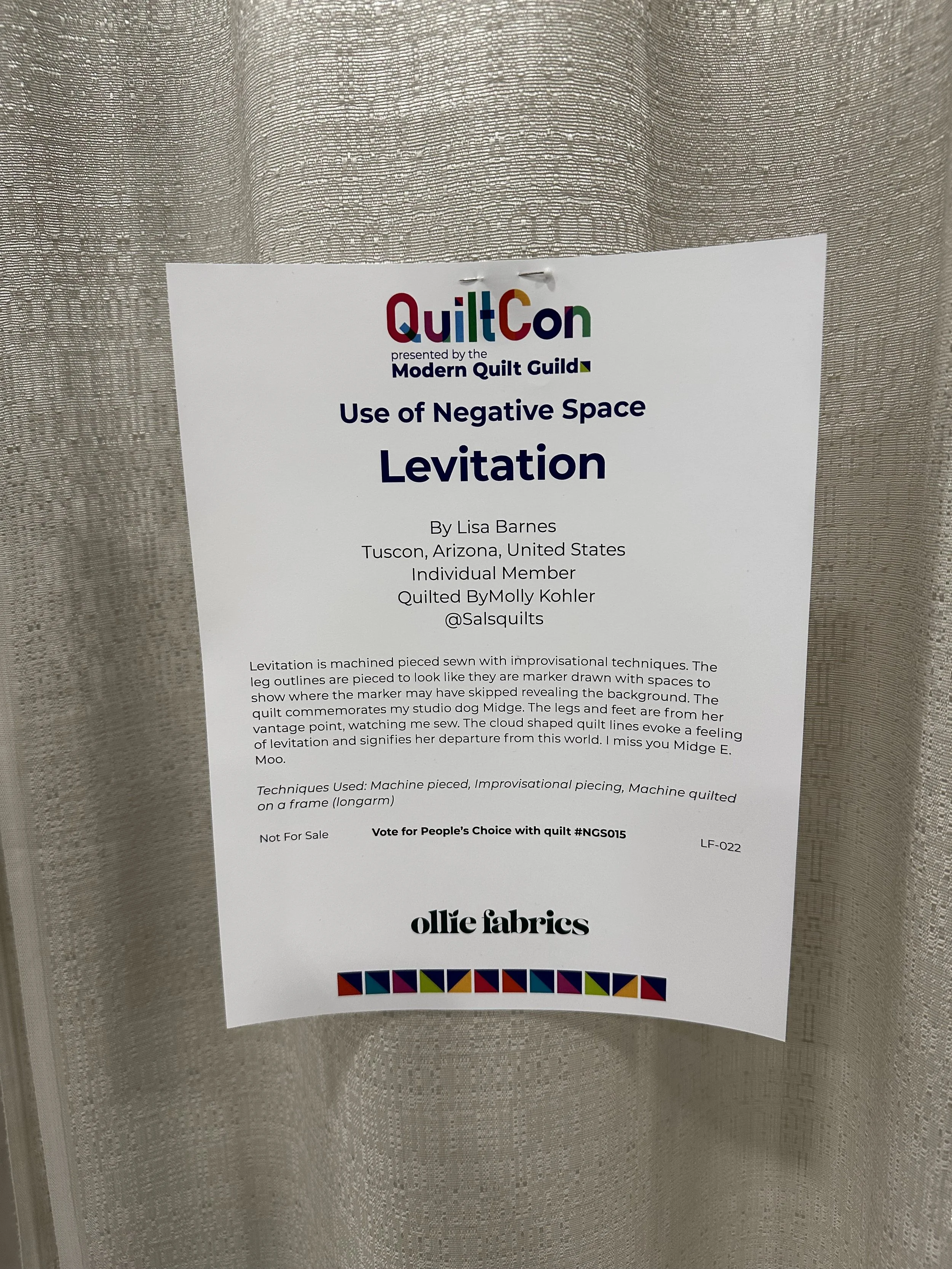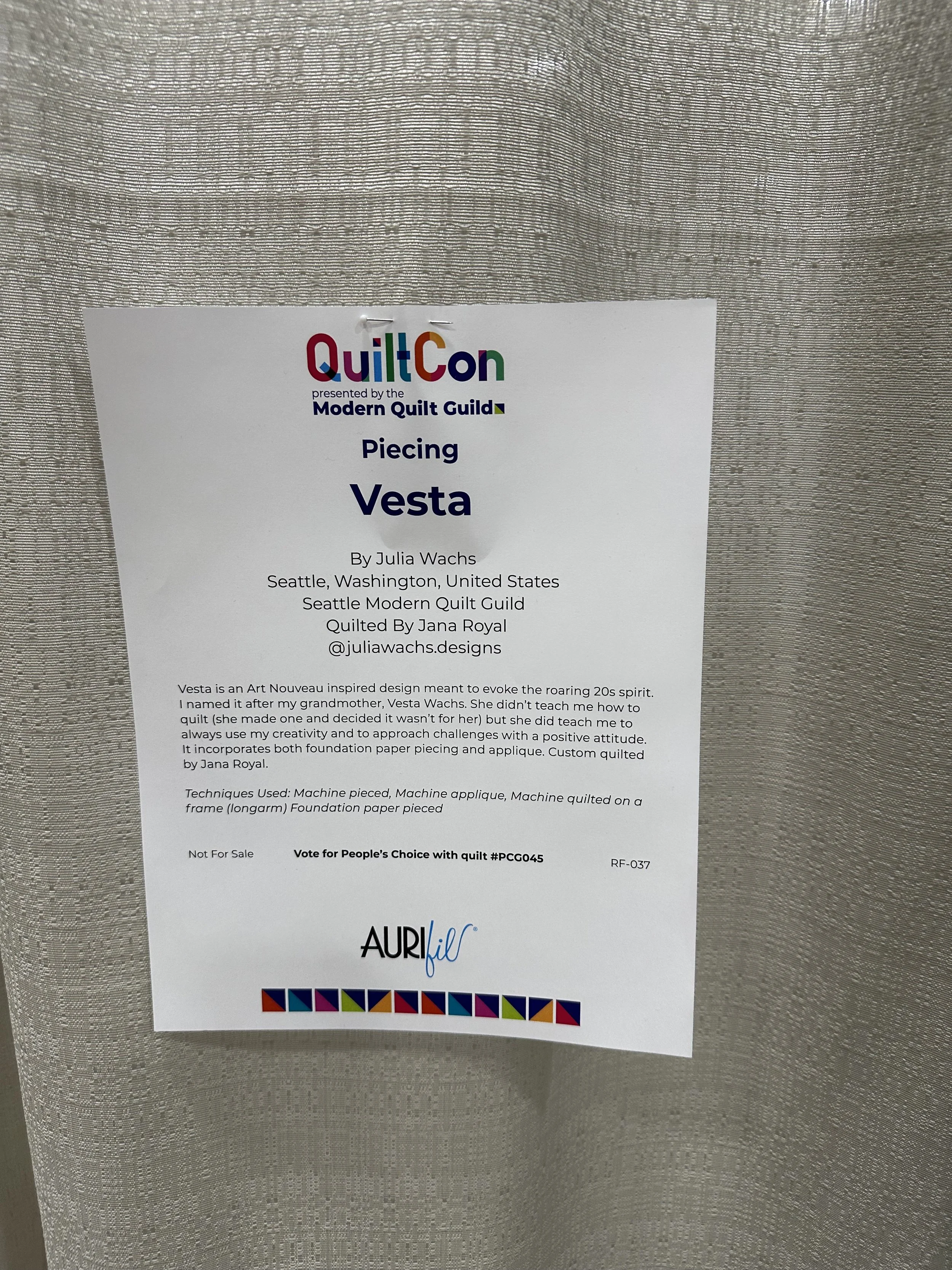As always, Veruschka’s work was stunning. The quilt was double sided, a extra special homage to the statue that allows viewers to walk around and absorb the female subject and her lone star quilt from all angles. The choice of Dignity for Best in Show felt like a beautiful homage to the native peoples of the western United States.