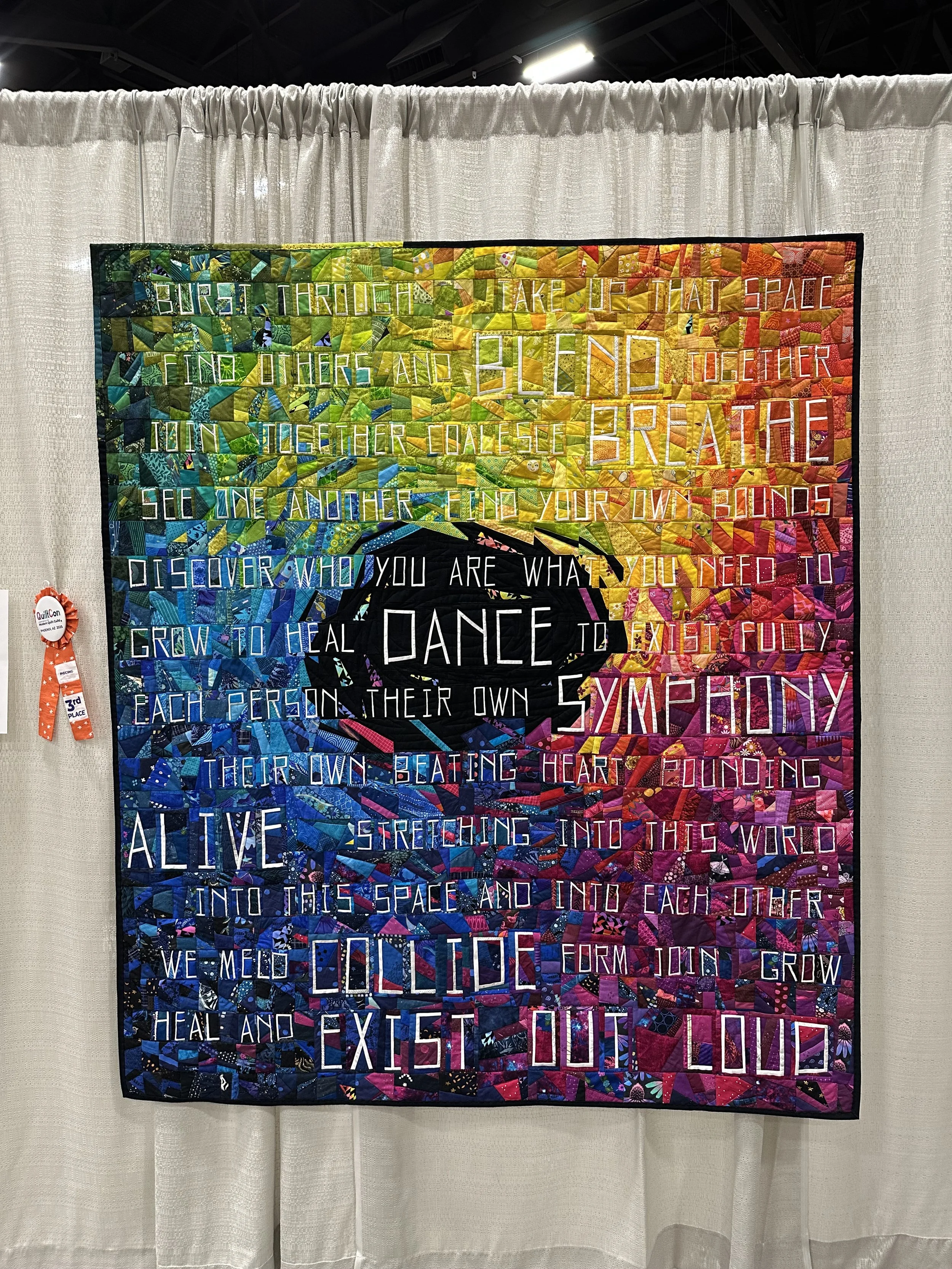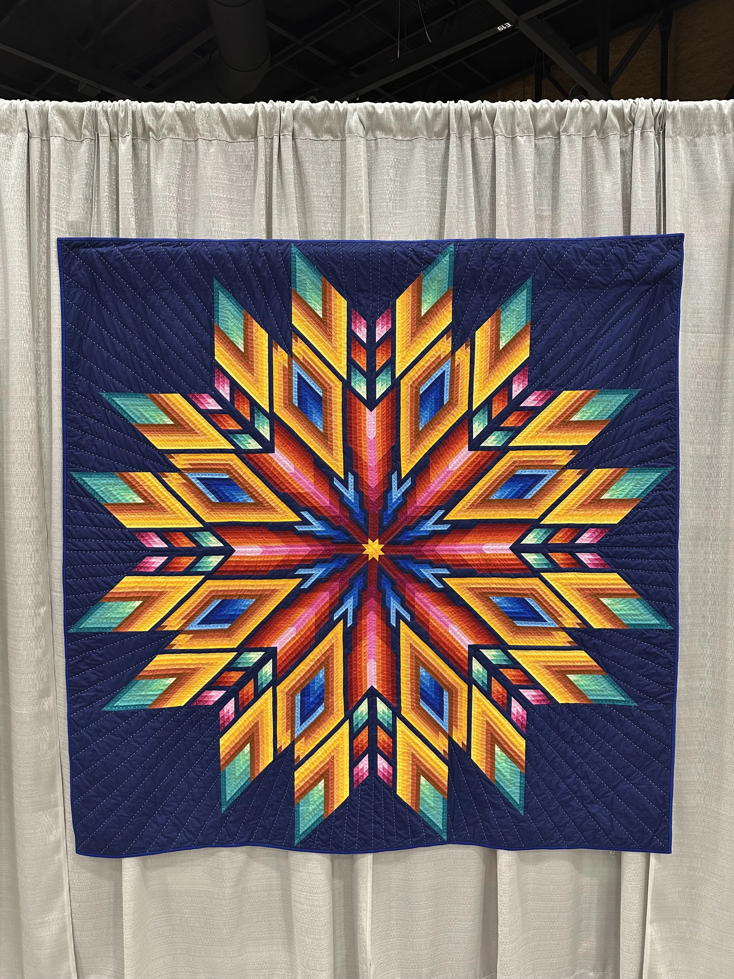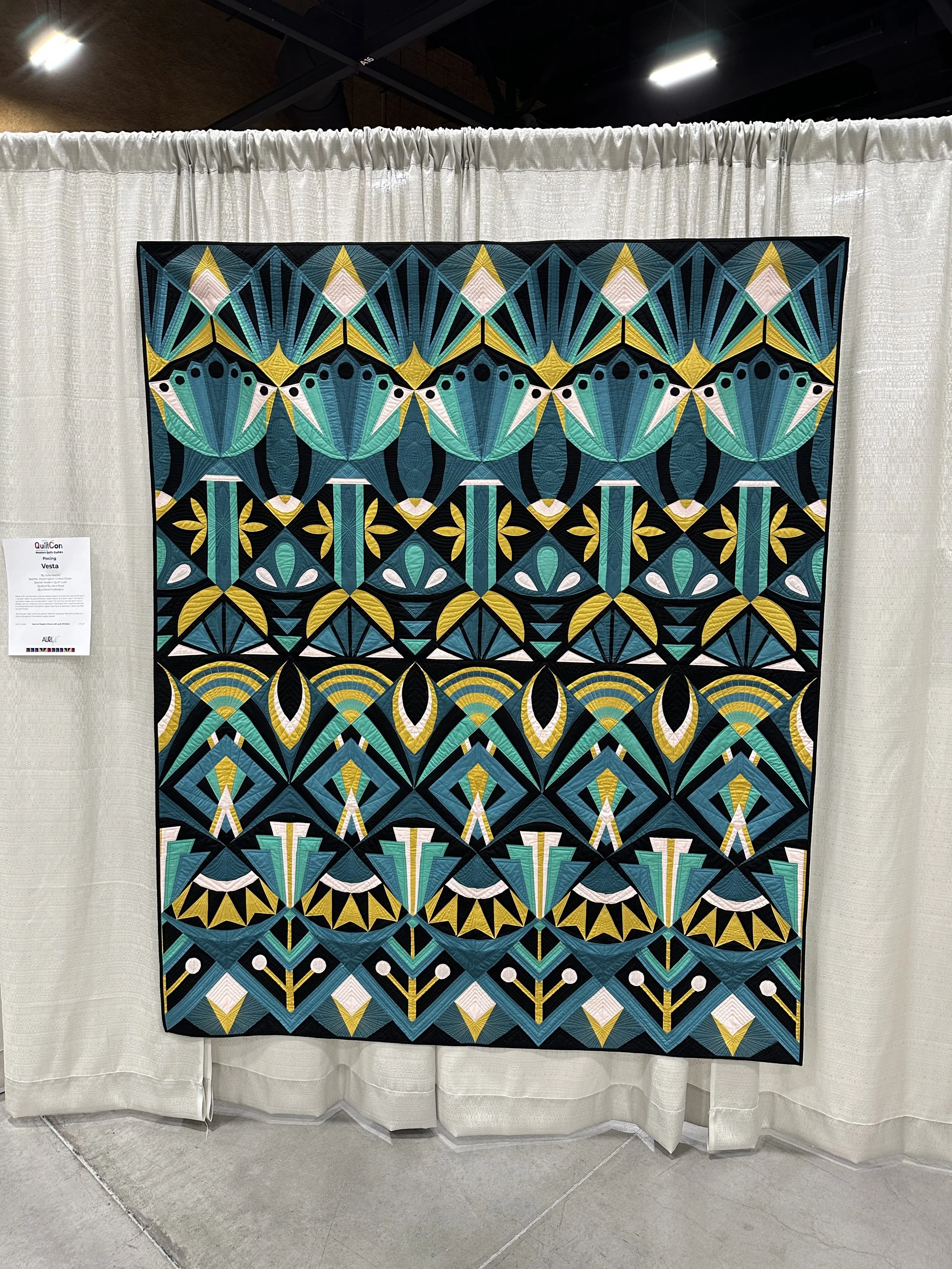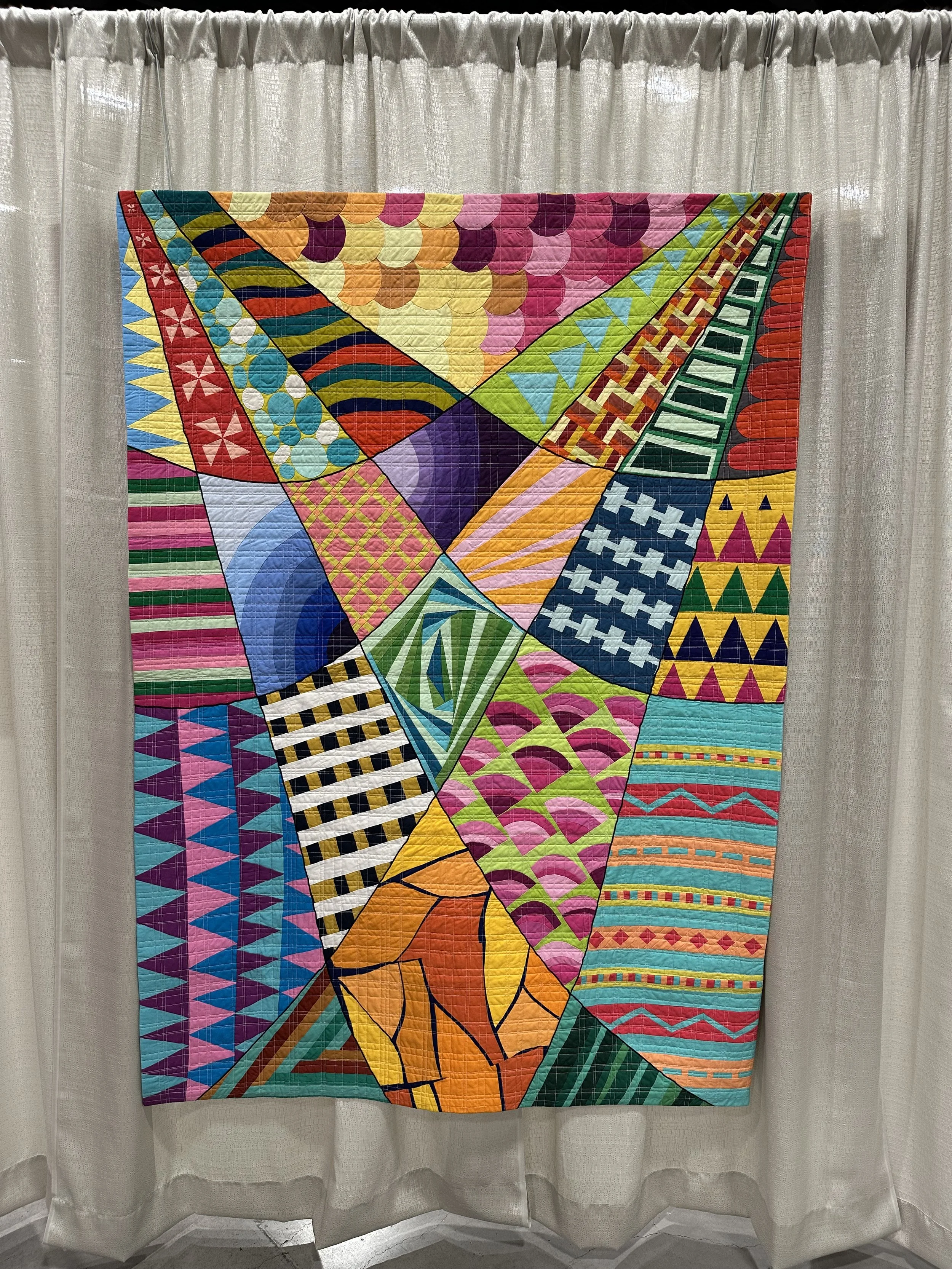 The 2025 Best in Show winner was Veruschka Zarate (@prideandjoyquilting) for her quilt, Dignity. Veruschka is known for her use of gorgeous colors and amazing foundation paper piecing design skills. Dignity is a quilted representation of a massive statue in South Dakota of the same name and designed by DC Lamphere.