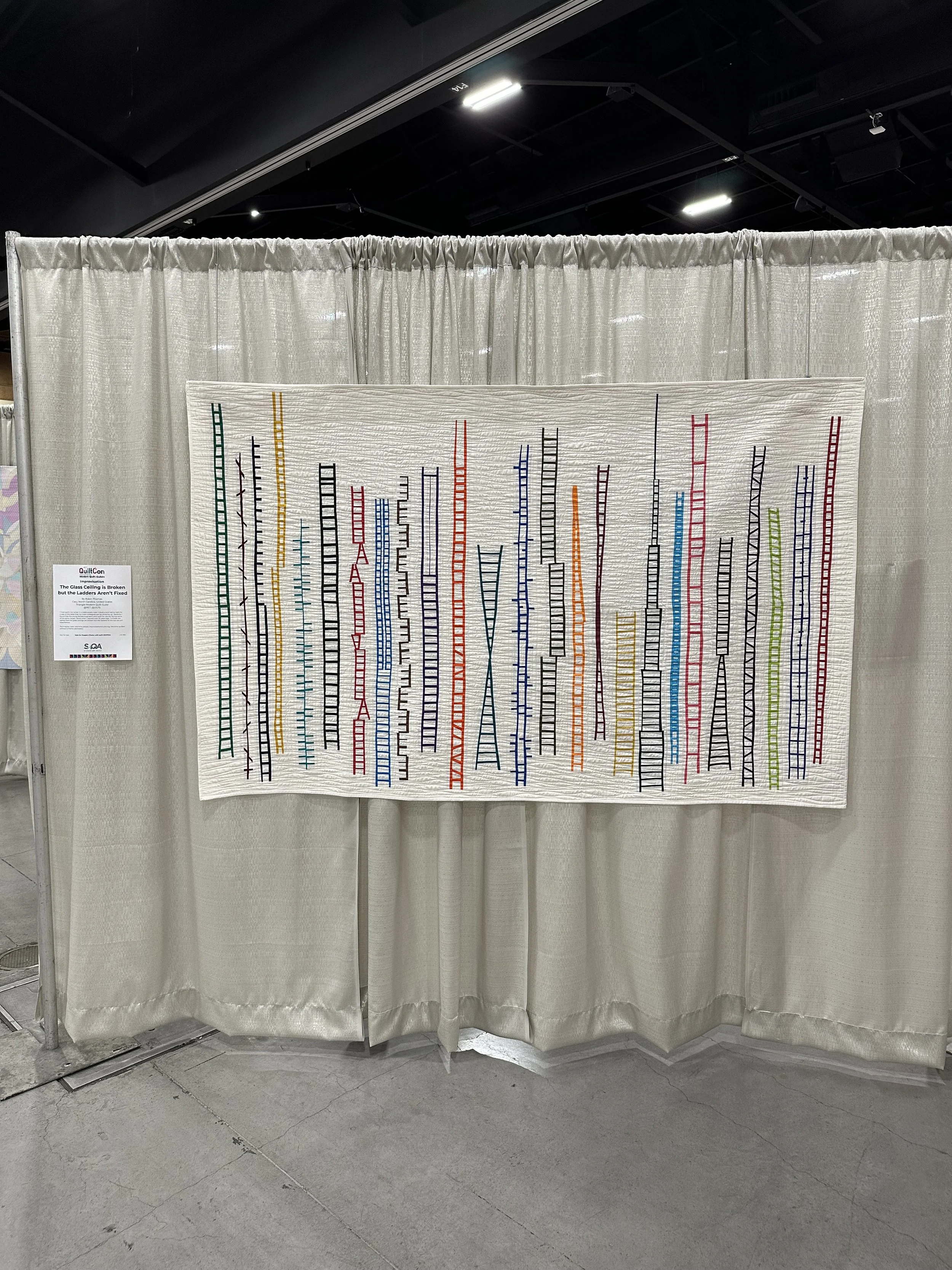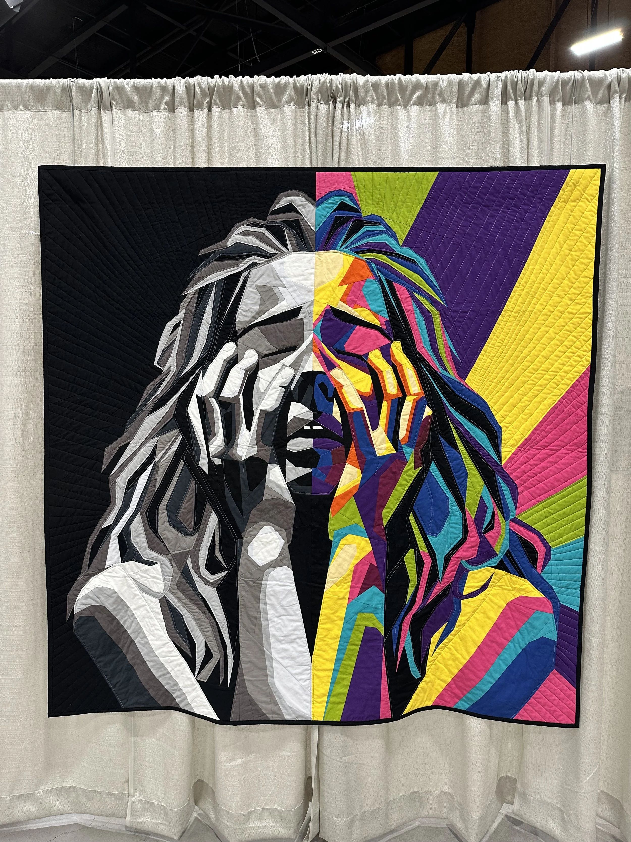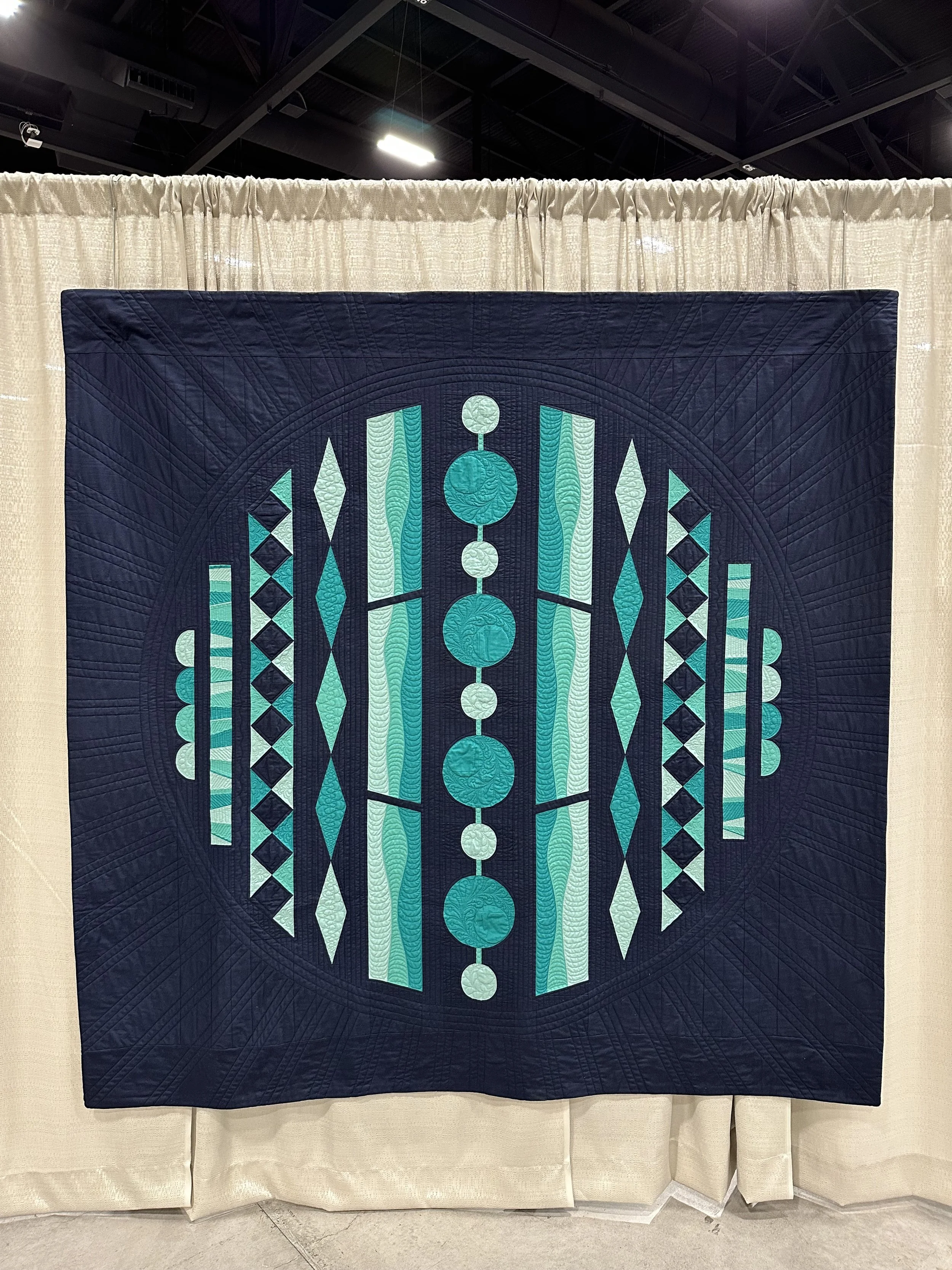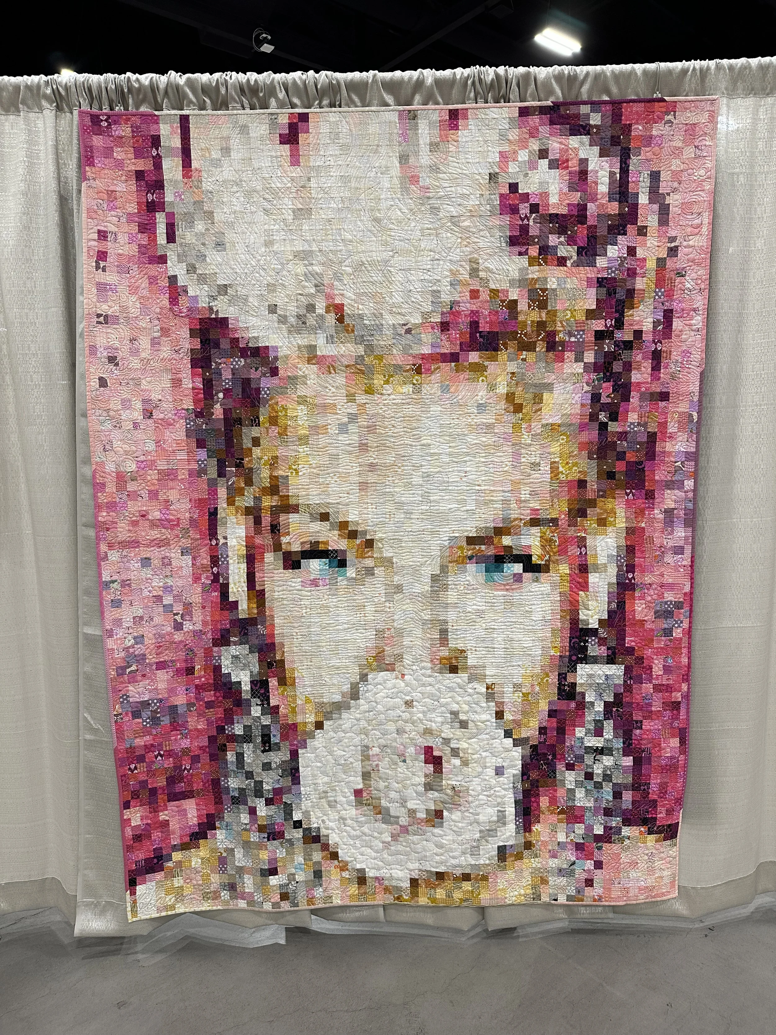 The 2025 Best in Show winner was Veruschka Zarate (@prideandjoyquilting) for her quilt, Dignity. Veruschka is known for her use of gorgeous colors and amazing foundation paper piecing design skills. Dignity is a quilted representation of a massive statue in South Dakota of the same name and designed by DC Lamphere.