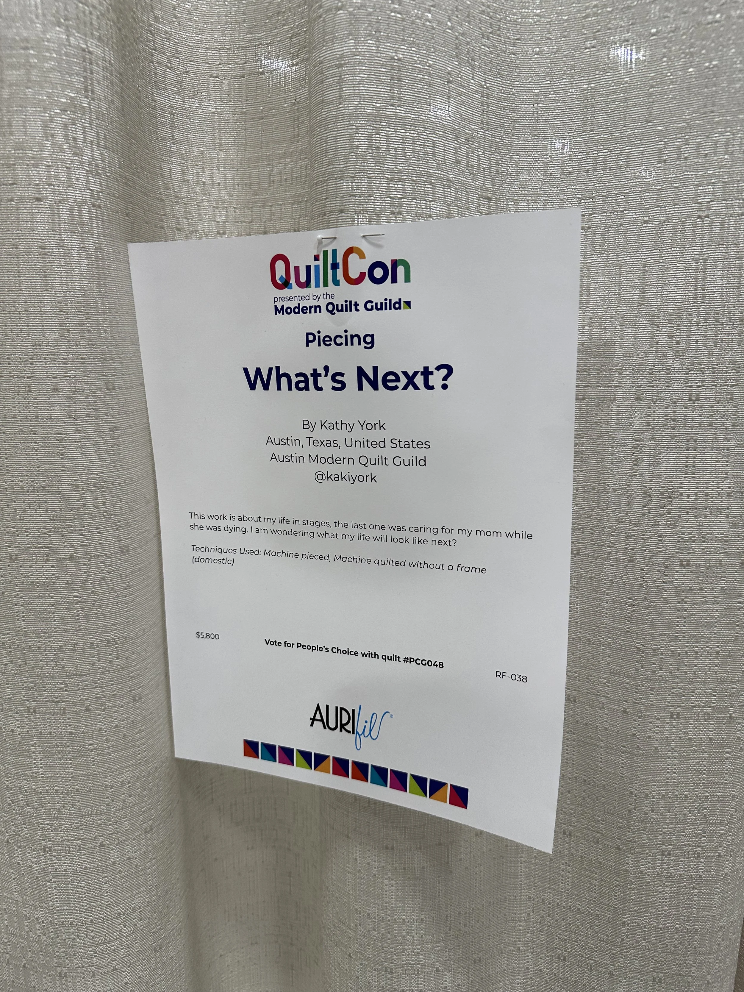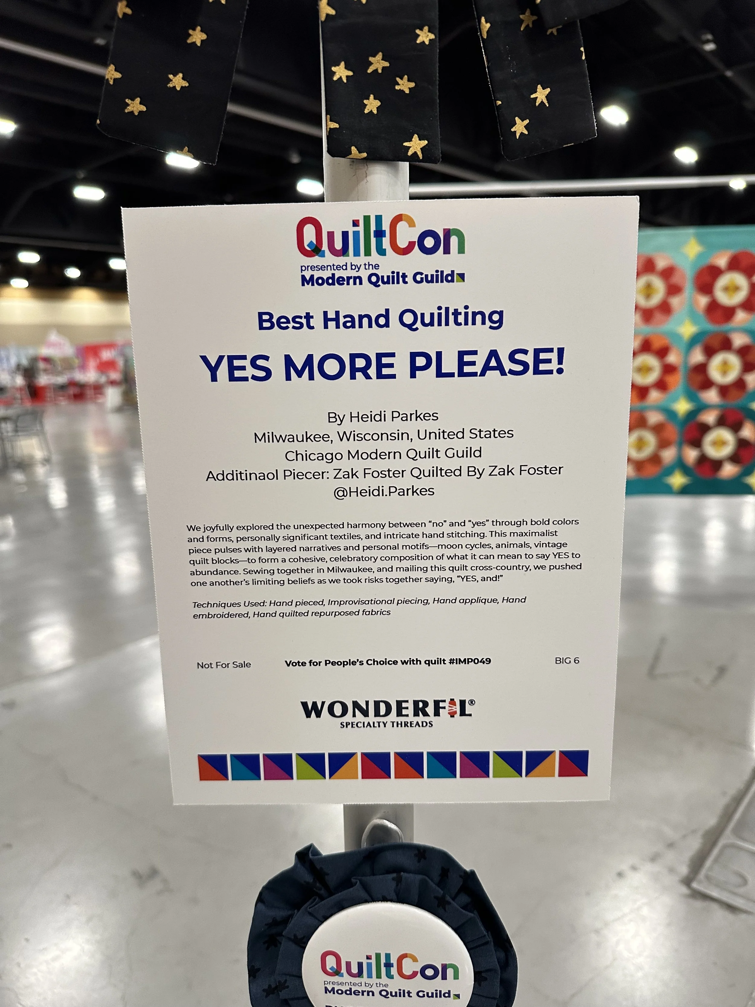 I’d be curious to see if the MQG would consider a few more categories in the show. I’d love to see a quilt from every guild chapter hanging, selected by the members of that individual guild. I’d love a section for our new quilters (quilting less than three years) so we can celebrate new makers. I’d love a section focusing on the use of color. We’ll see what the future holds!