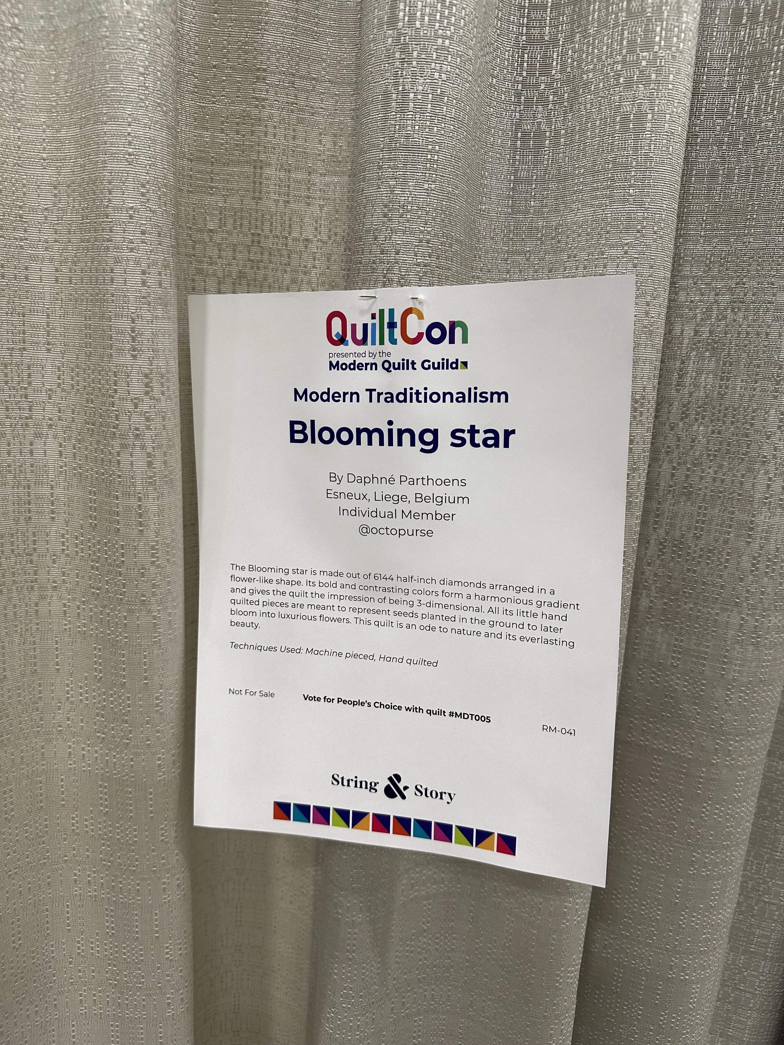 For the fourth time, String & Story was proud to sponsor the Modern Traditionalism section of the show. As someone who loves prints and solids, traditional piecing, and all the funky FMQ, so many of the quilts that appear in this category speak to me each year.