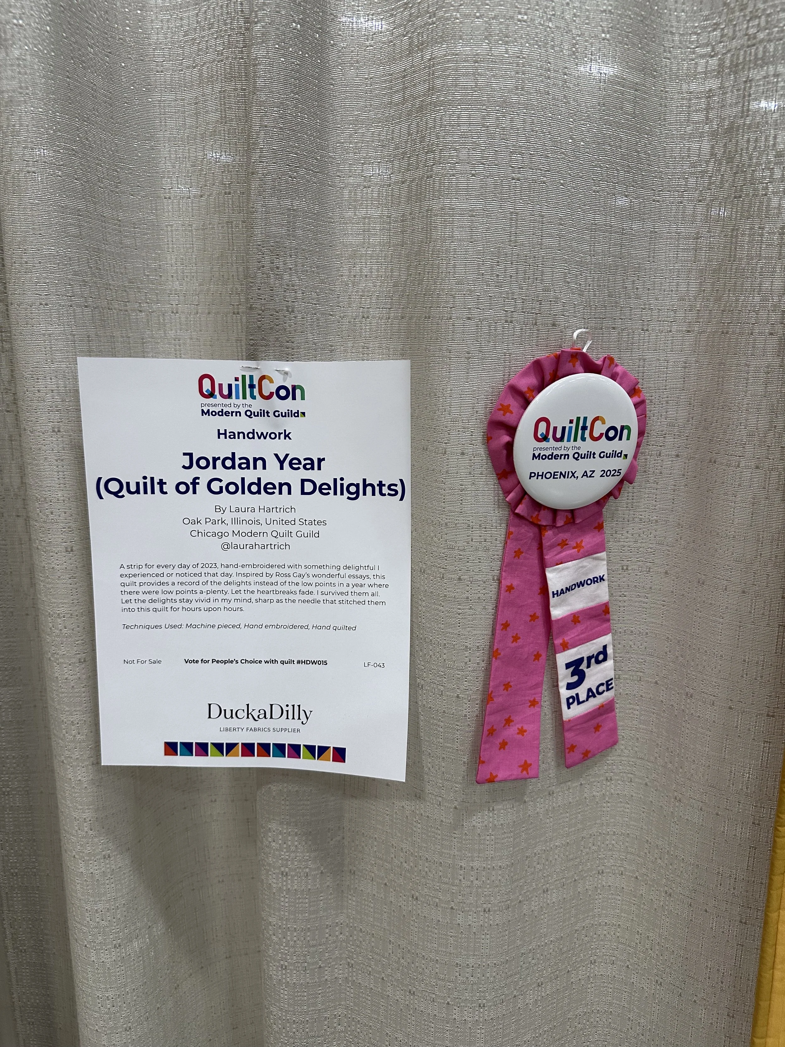 This show makes me giddy with delight each year. It was fascinating to observe a few other trends that are harder to capture in just a few photos: a movement back toward solids and straight lines, the unabashed quilt JOY, and the high level of skill demonstrated in these quilts. It felt fresh and familiar all at once.