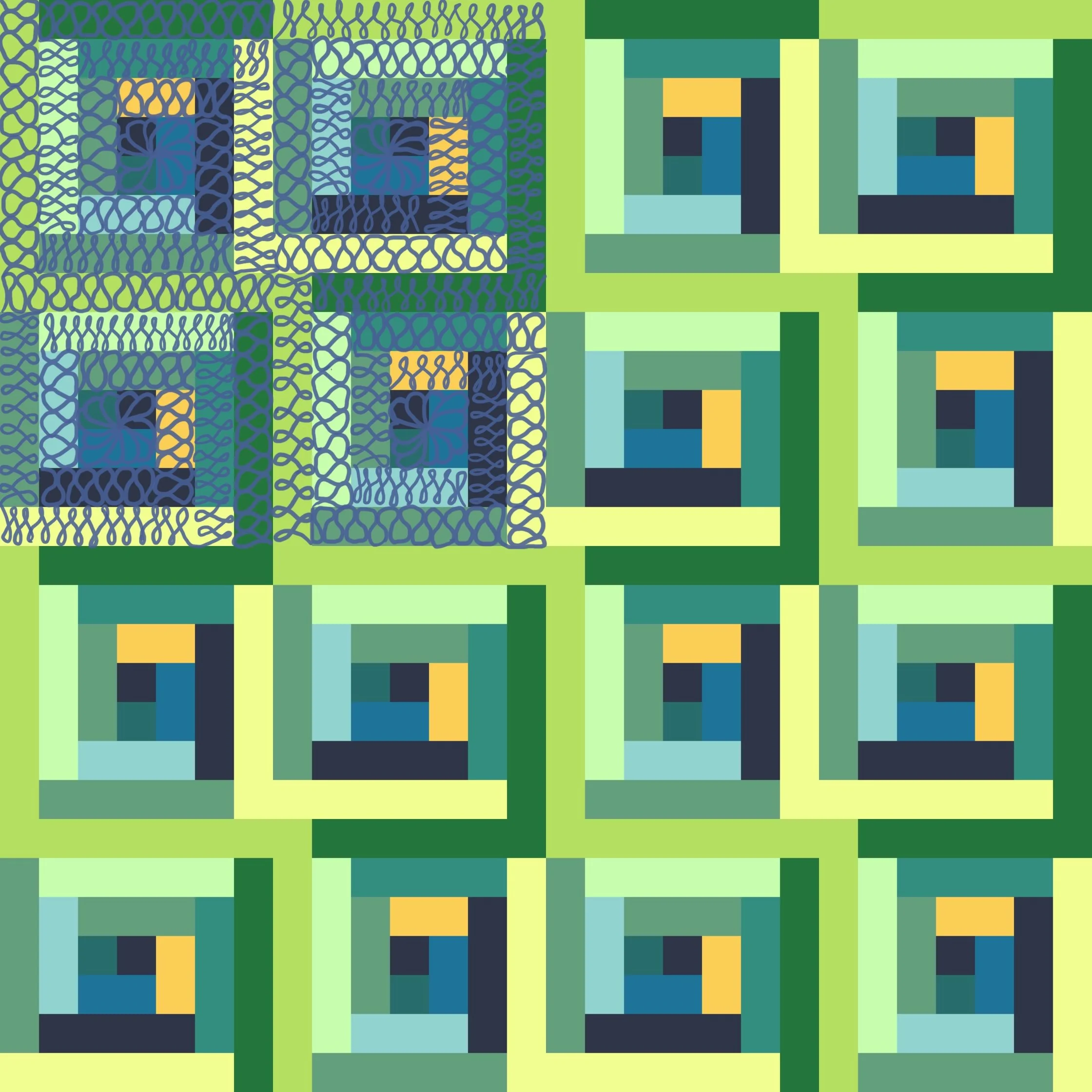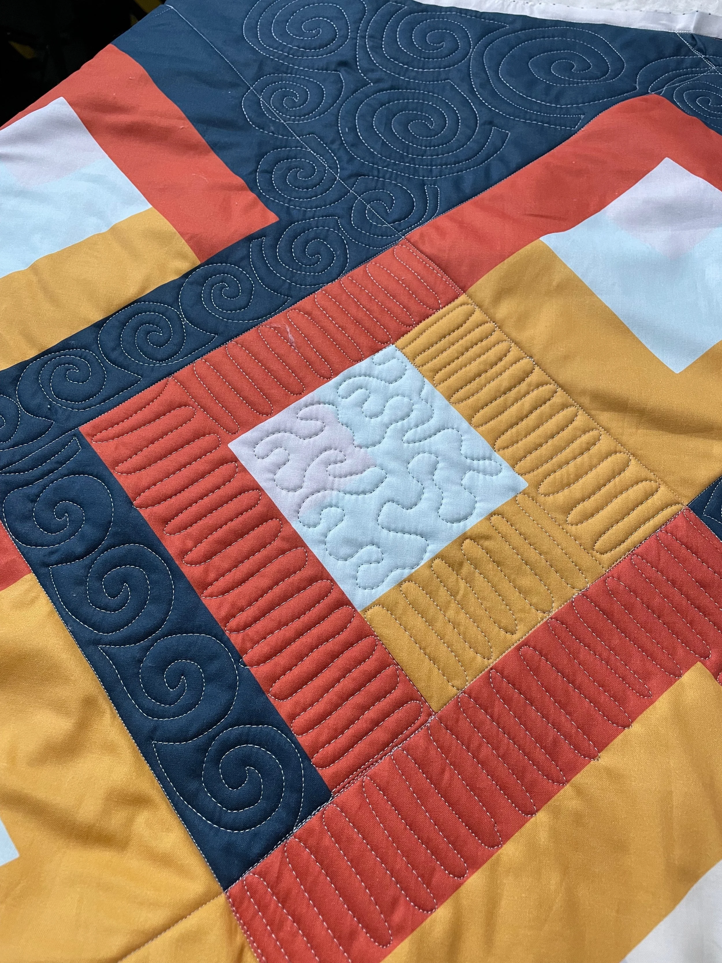 If you are practicing your border and sashing motifs or wanting to add a lot of texture without too much complexity, the log cabin quilt looks amazing with motifs fit into the strips and squares.