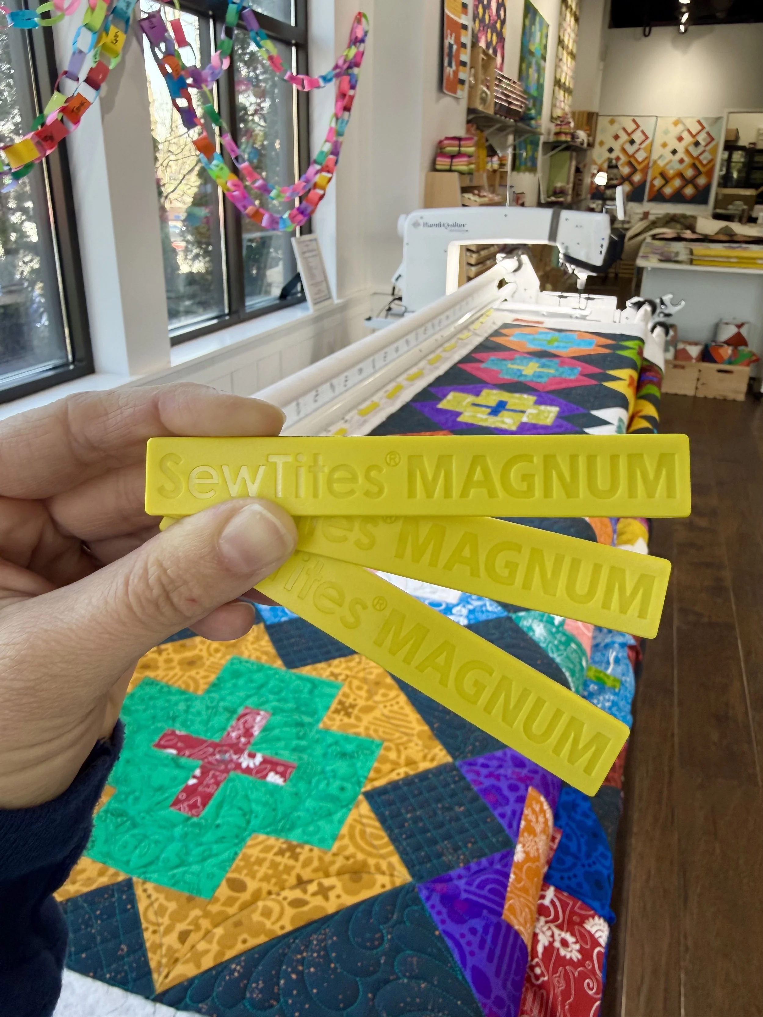 SewTites® Magnums are the longest SewTites magnet, designed for loading quilts onto longarm machines quickly, easily, and painlessly.